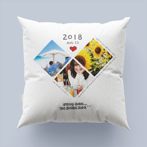 V자 형태로 3장의 사진을 배치한 아기자기한 쿠션
