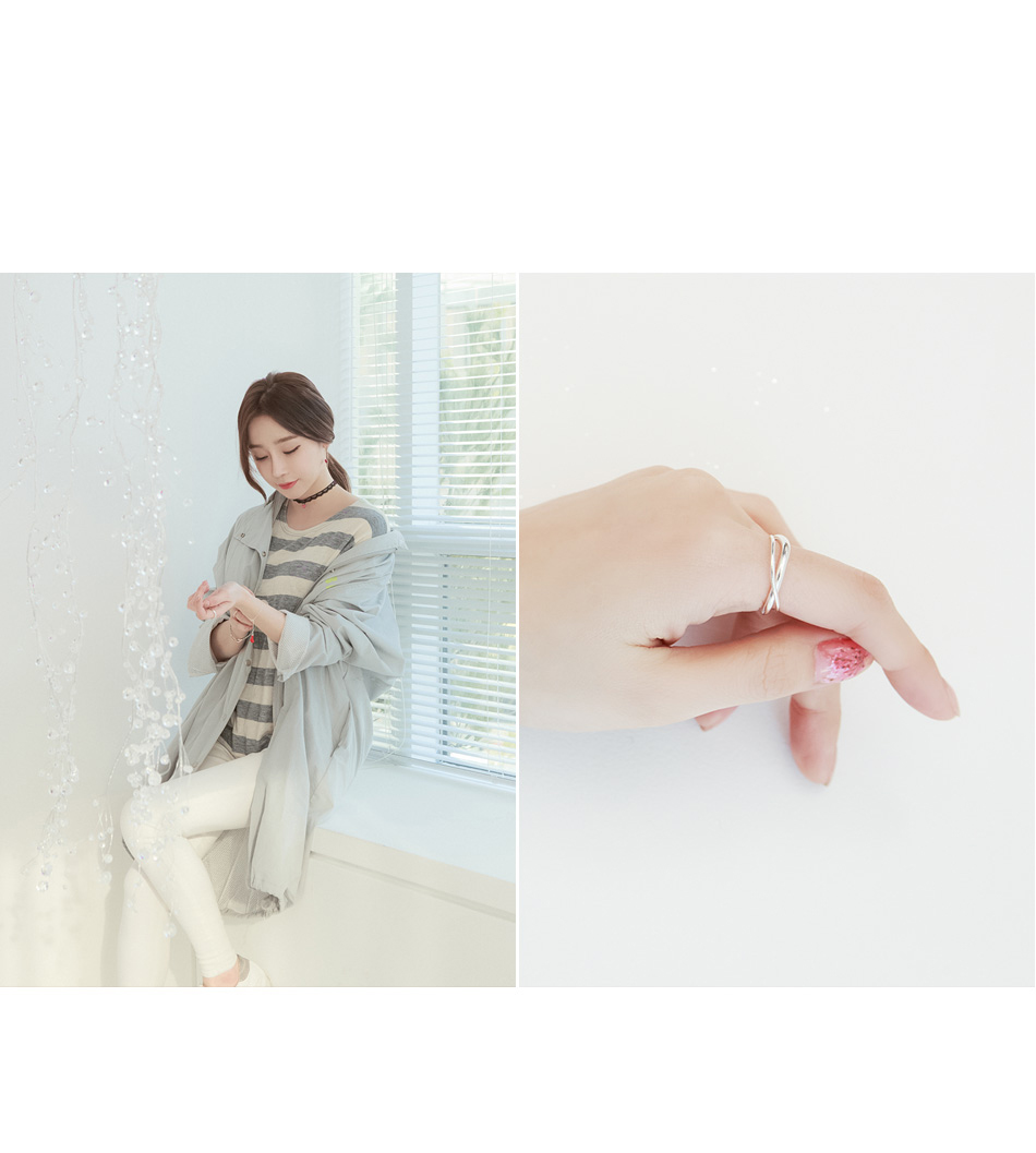 2개의 다른 링이 교차된 유니크한 디자인의 실버링 입니다.