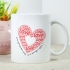 하트문양 안쪽에 LOVE 문자가 패턴으로 디자인된 포토머그컵