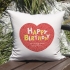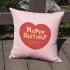 각종 기념일(생일, 발렌타인데이. 100일기념, 어버이날, 스승의날 등)을 축하하기 위한 깔끔한 꽃무늬 배경이 들어간 하트모양의 포토쿠션