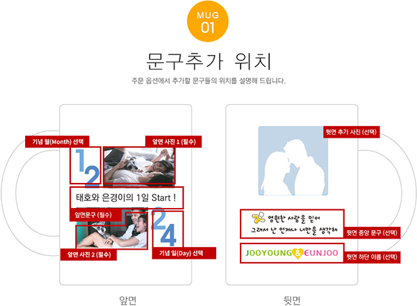 사진과 기념일, 메시지가 세겨진 깔끔한 디자인의 포토머그컵